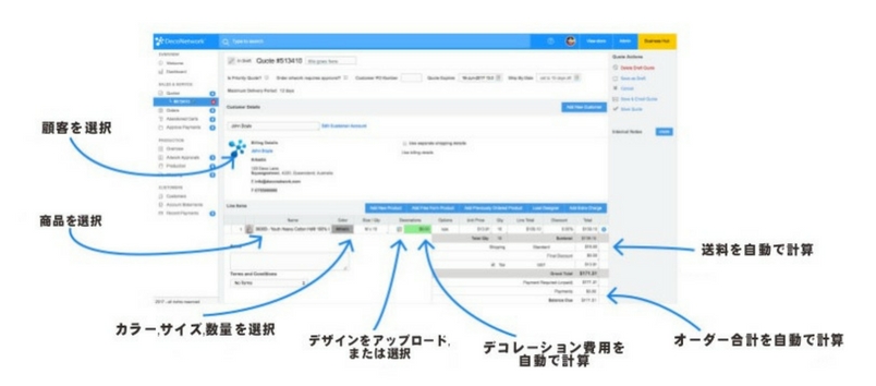 商品コスト、デコレーション費用、送料、注文合計が自動的に計算され、その結果は顧客がコメントしたり承認したりできるプロフェッショナルな見積もりです。
