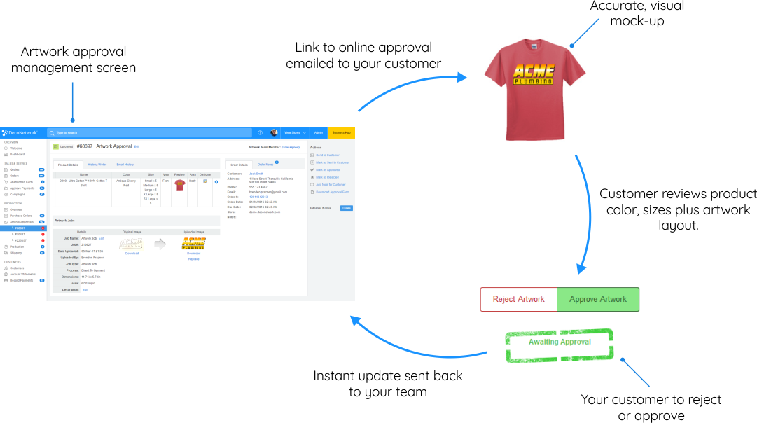 プロダクションの準備ができているアートワークをプロダクションフロアに送る視覚的なオンライン承認により、あなたのアートワークがより早く承認されます。 Learn more
