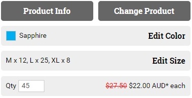 サイズと色はオンラインデザイナーで簡単に選択できます。価格は、一括購入で利用可能な一括割引で、より大きなサイズに対して自動的に調整することができます。